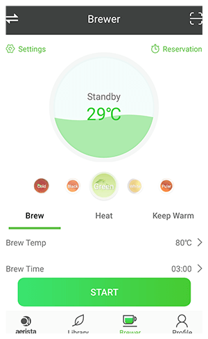 Step 2: Choose tea type and tap 'BREW' to start auto brew.